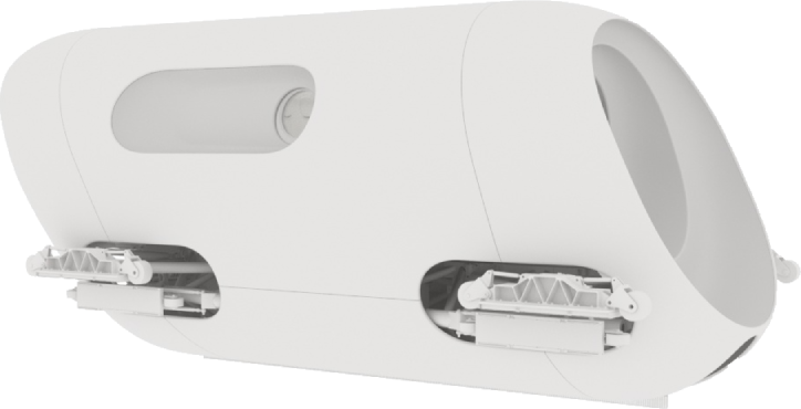 The levitating chassis is made of structural aluminium and houses the propultion system and magnets for levitating and guidance. Its design is similar to a Formula 1 car,as it's build, like the shell, to be lighweight but strong.